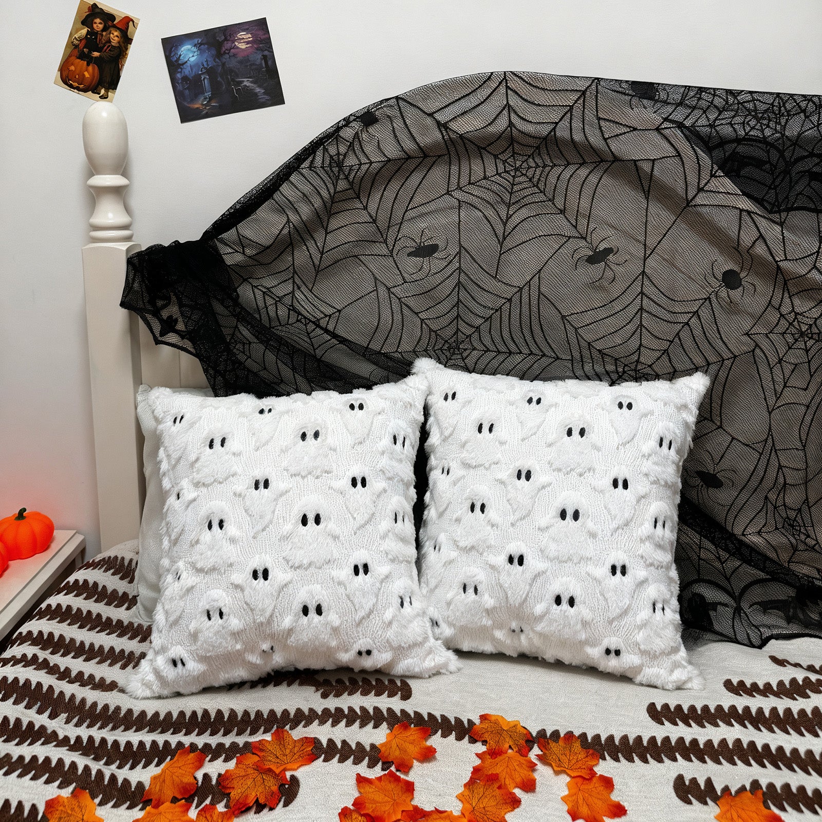 Features a mix of cute and classic Halloween patterns including friendly ghosts, cute pumpkins to create a perfect fall and Halloween atmosphere in your home.