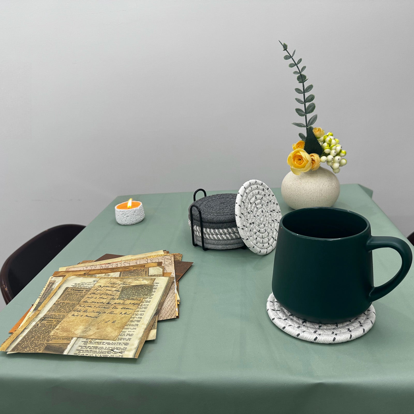 Transform Your Tabletop into a Clutter-Free Oasis Tired of unsightly water rings and cluttered coasters? Meet WEAVEMYTH’s 8-piece cotton coaster set—crafted for modern homes that value minimalist aesthetics and practical performance. Designed to absorb spills instantly, blend seamlessly into any decor, and protect surfaces from heat and scratches, this set includes a sleek metal holder to keep your space tidy. Perfect for coffee lovers, wine enthusiasts, or anyone craving a polished home vibe.
