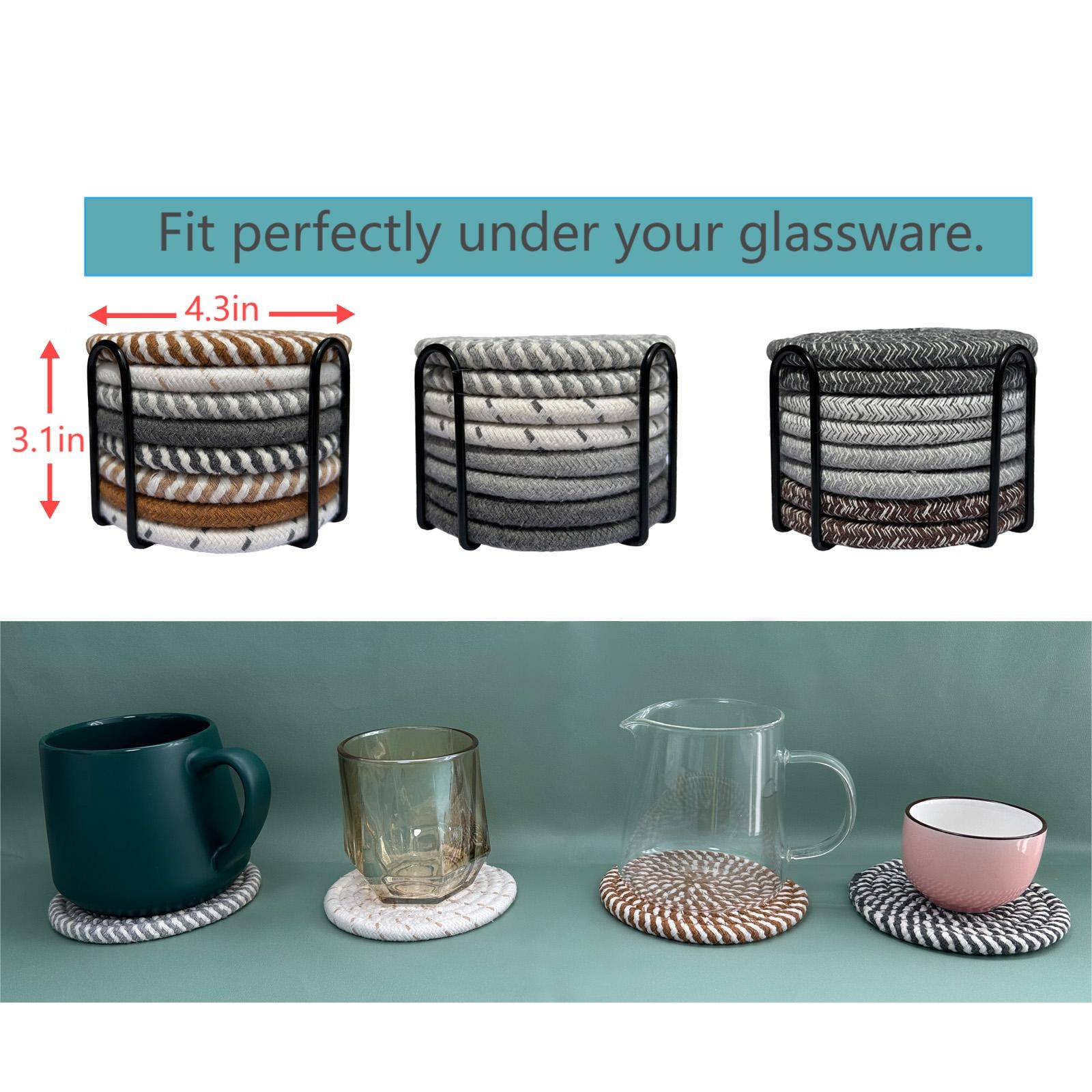 ULIECHIL Minimalist Cotton Drink Coasters (Set of 8 + Holder)