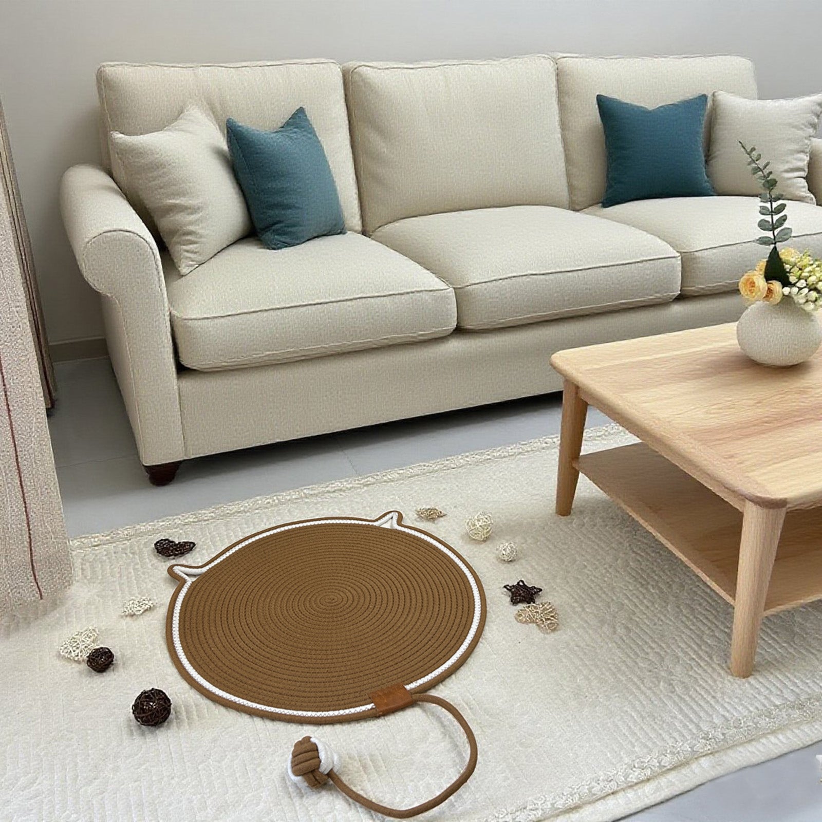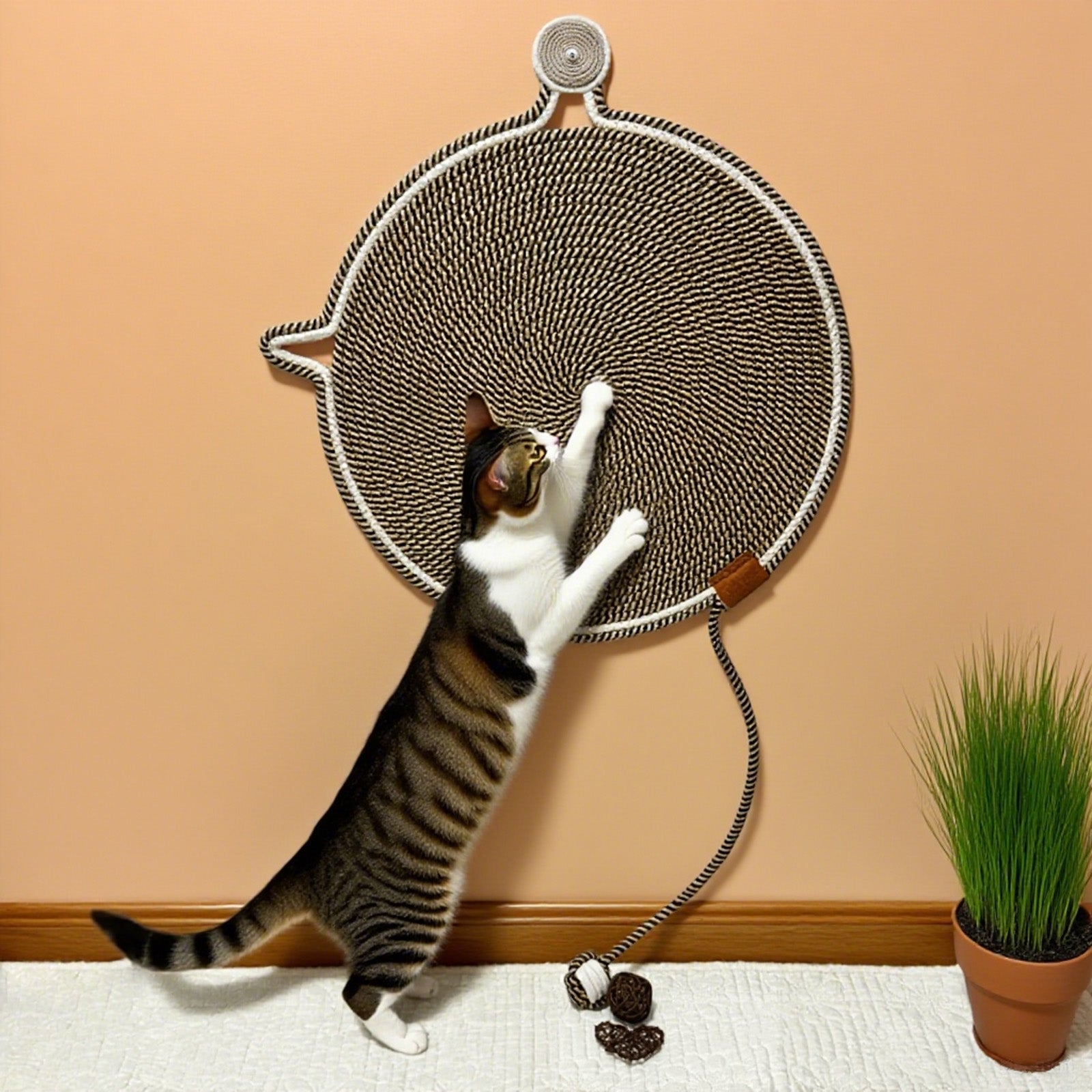 Tired of shredded couches and clawed walls? Meet the WEAVEMYTH19.7” Cat Scratcher Mat—crafted from 100% natural cotton rope to satisfy your cat’s instincts while safeguarding your furniture. With a built-in teaser ball, wall-mounting ear, and ultra-durable weave, this mat converts chaos into chic decor. Finally, peace of mind and paws.